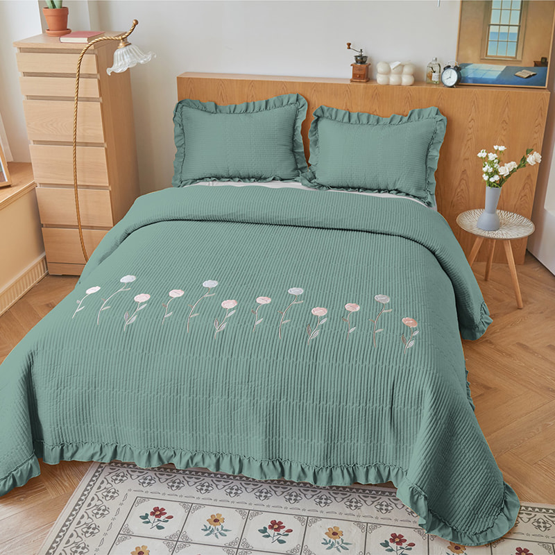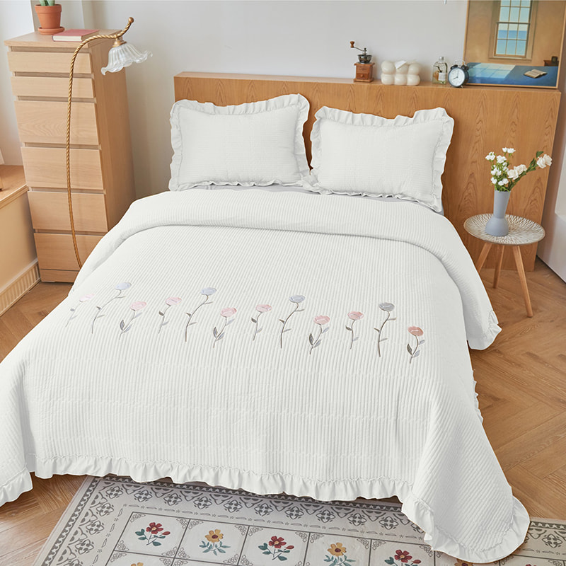 1. Hieno käsityötaito ja huippuluokan rakenne: tämä Tikattu brodeerattu sängyn kansi Käyttää hienoa kirjontatekniikkaa kolmiulotteisen ja herkän kuvion luomiseen, mikä ei vain paranna visuaalista ja kosketusluokkaa, vaan antaa tuotteelle myös ainutlaatuisen taiteellisen viehätysvoiman. Suurten tiheyskankaiden käyttö ei vain paranna tuotteen ryppyjen vastus- ja kulutuskestävyyttä, vaan myös pitää sen tasaisena koneen pesun jälkeen, helppo hoitaa ja helppo ylläpitää. Nantong Noble International Trading Co., Ltd. on hyvin tietoinen siitä, että asiakkaiden kysyntä kodin tekstiilituotteille ei rajoitu kauneuteen, vaan keskittyy myös sen käytännöllisyyteen ja kestävyyteen. Suurten tiheyden kankaan ja kirjontatekniikan yhdistelmä ei vain tee tuotteesta kestävää ja pitkäaikaisen, vaan siinä on myös erinomainen värinpohja, pestävä ja kuivattava, kirkas ja kestävä väri, kosteudenkestävä ja ei helppo absorboida pölyä, joka sopii erilaisiin ympäristöihin.